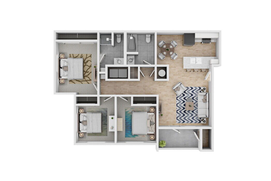 The Riverbend delivers flexibility with three bedrooms, two full baths, and a private patio or balcony. With washer/dryer hookups, modern kitchen finishes, and bright open living areas, this apartment is a perfect fit for families, professionals, or roommates looking for value and style in Redmond, OR.